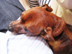 | 8/11 *華&小梅ちゃんに会う!* netで知り合った、華さんと華さんのわんこの小梅ちゃんに会いました! 小梅ちゃんはmapと一緒のmixの黒いわんこ。 とっても華奢で、おめめがくりっとしてて、大人しくて 「おんなのこ!!」って感じのわんこちゃんでした。 とても1歳になりたてとは思えない落ち着きぶりで、華さんに抱っこをおねだりしたり かなりキュートでした。 地下鉄で待ち合わせしたんだけど、小梅ちゃんはバッグにすっぽり入っていました。 それがまたかわいかった。 ちょっと歩いてdogcafeへ。 小梅ちゃんは他のワンコと挨拶したり、イイコちゃんでした。 華さんは小梅ちゃんに似た感じの方で、とっても楽しくおしゃべりさせていただきました。 今回はmapはお留守番。(電車に乗れないからね)今度はmap連れで会いたいです。 おしゃべりと小梅ちゃんをなでるのに夢中であまり写 真とれませんでした。 まなざしがmapに似てたかな。でも小梅ちゃんと比べるとmapはすごく素朴系のかおだちだなぁ。 かなり連れて帰りたかった… |