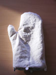 なべつかみ作り。中綿はオットが着ていたGAPのセーターです.笑