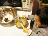 ムスコにも手伝ってもらって。でもすぐ飽きて、レーズンをつまんでいた。