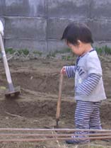 畑のお手伝い。じいじが作った畝を整えて(?)います。