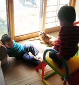 まったりするクリと寛太。