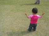 外でお弁当たべて、鳩を追いかけたり、シャボン玉したり。