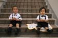 微妙な距離を保つ2人。 しかも外で走り回ってすでに乱れています。